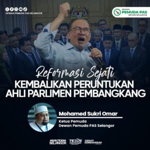 KUALA LUMPUR (5 Januari 2026) — Ketua Pemuda PAS Selangor, Ustaz Mohamed Sukri Omar menyifatkan pemberian peruntukan kepada Ahli Parlimen pembangkang sebagai antara reform paling asas yang perlu dilaksanakan oleh YAB Perdana Menteri, Datuk Seri Anwar Ibrahim.
